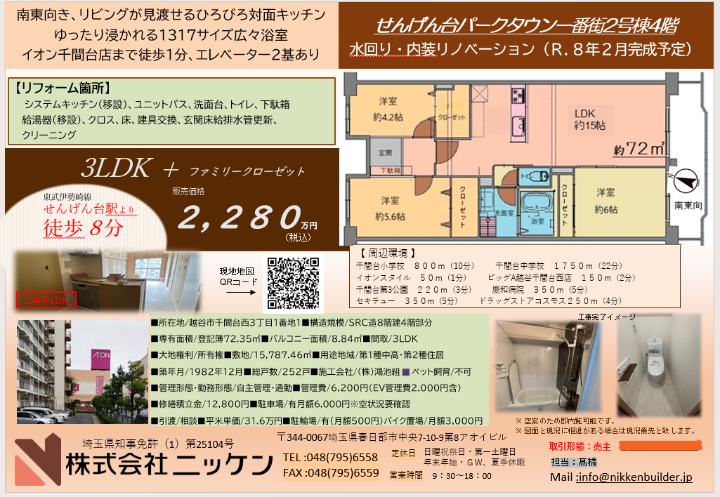 弊社所有のフルリフォーム物件(空家のため常時内覧可能です)