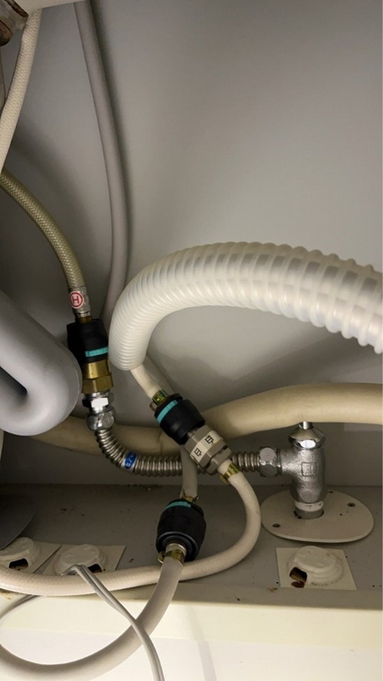 シンク下もたくさんの管でごちゃごちゃしているので、オールインワン水栓にしてすっきりさせます。