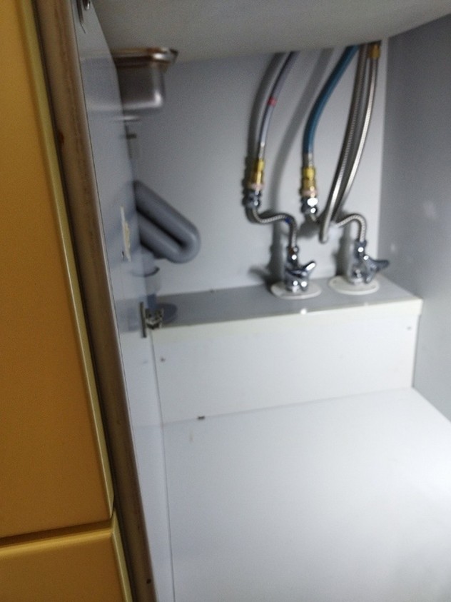 止水栓もハンドル付きのものに交換しました。オールインワン水栓で浄水も利用出来てキッチンの中もすっきりしました。