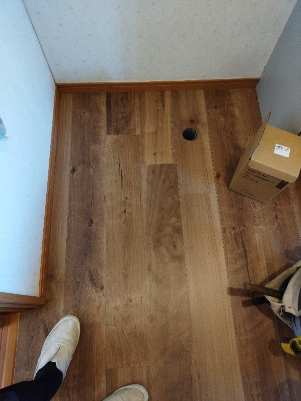 洗濯機の排水漏れ 床補修後 ウスイータ重ね貼り